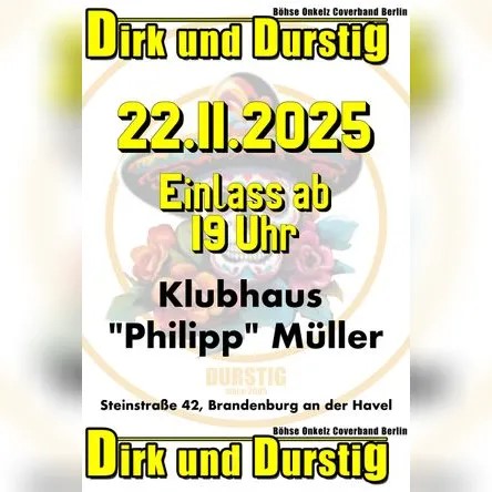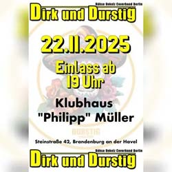 Tickets für DIRK UND DURSTIG am 22.11.2025 in Klubhaus Philipp Müller, Brandenburg an der Havel | Brandenburg Tanzt